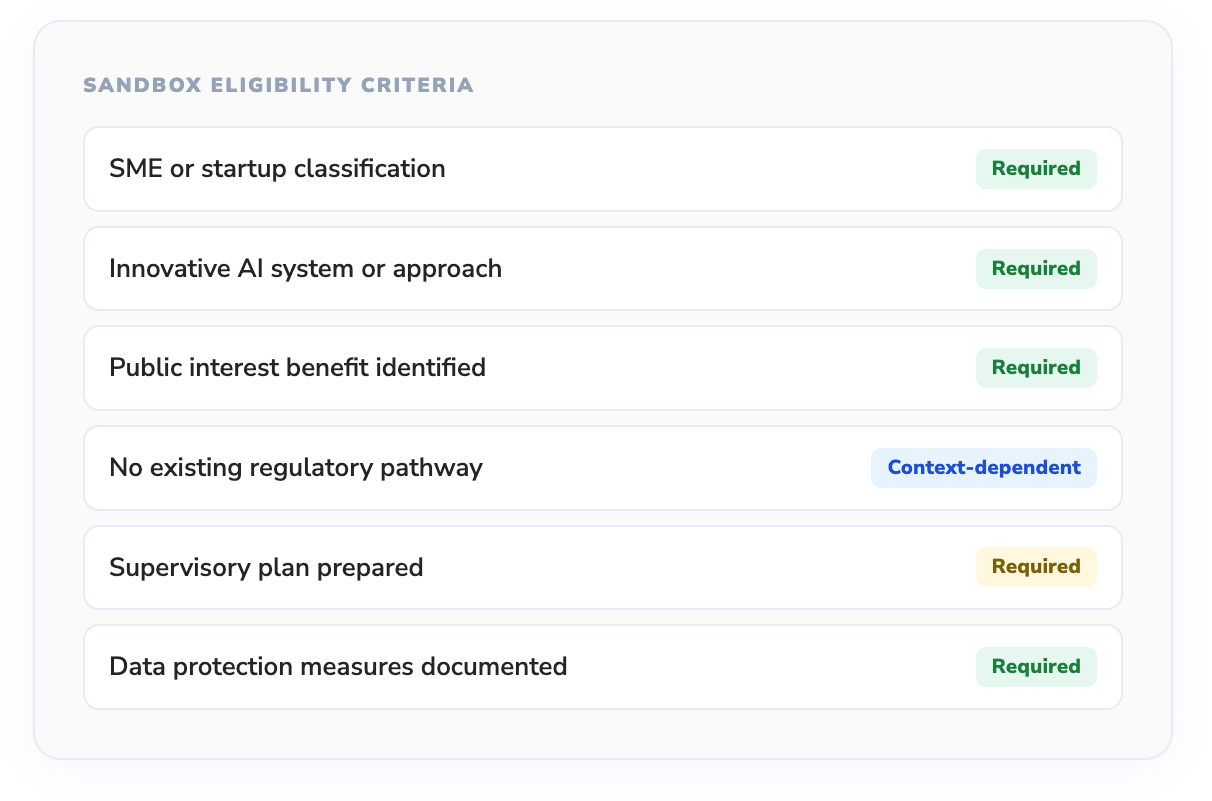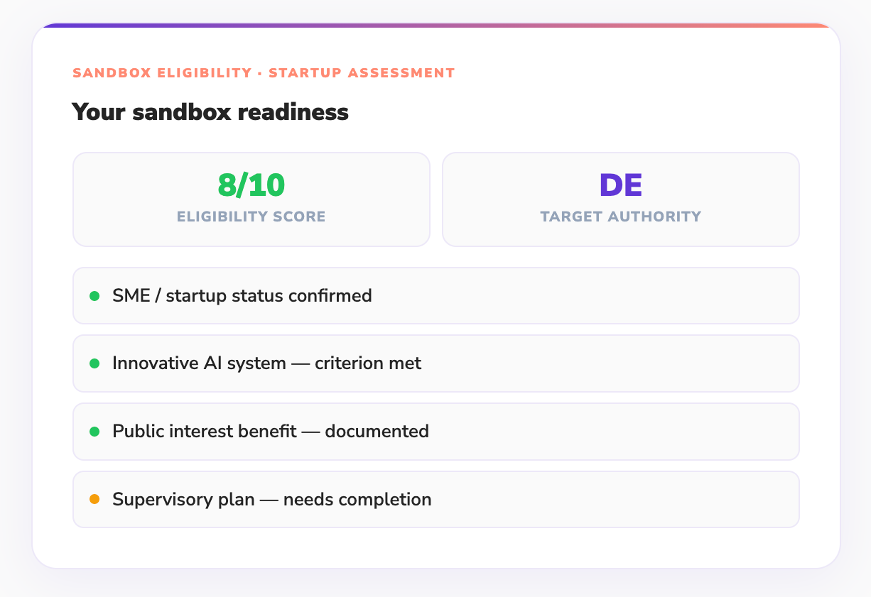 Eligible startups can develop and test high-risk AI with reduced compliance burden. Check if you qualify.